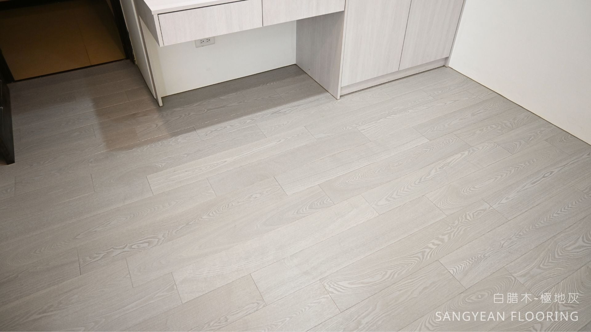 灰色是種十分難以抉擇的顏色,因為灰色又可以細分很多種,其中色調只要稍微不同,給人感覺就會截然不同,而天然木材質中又沒有灰色,所以海島型木地板要做灰色是比較困難的。
