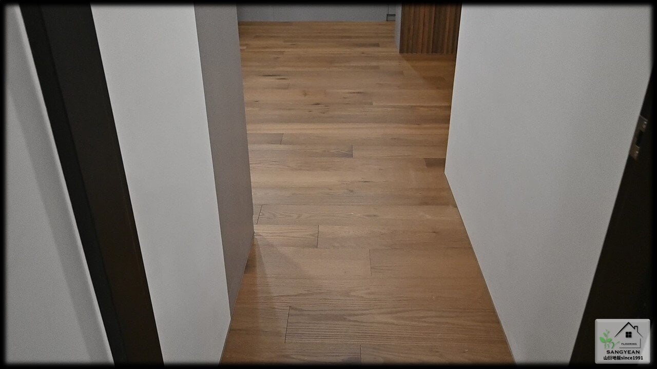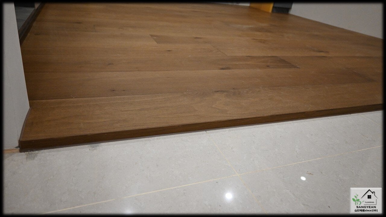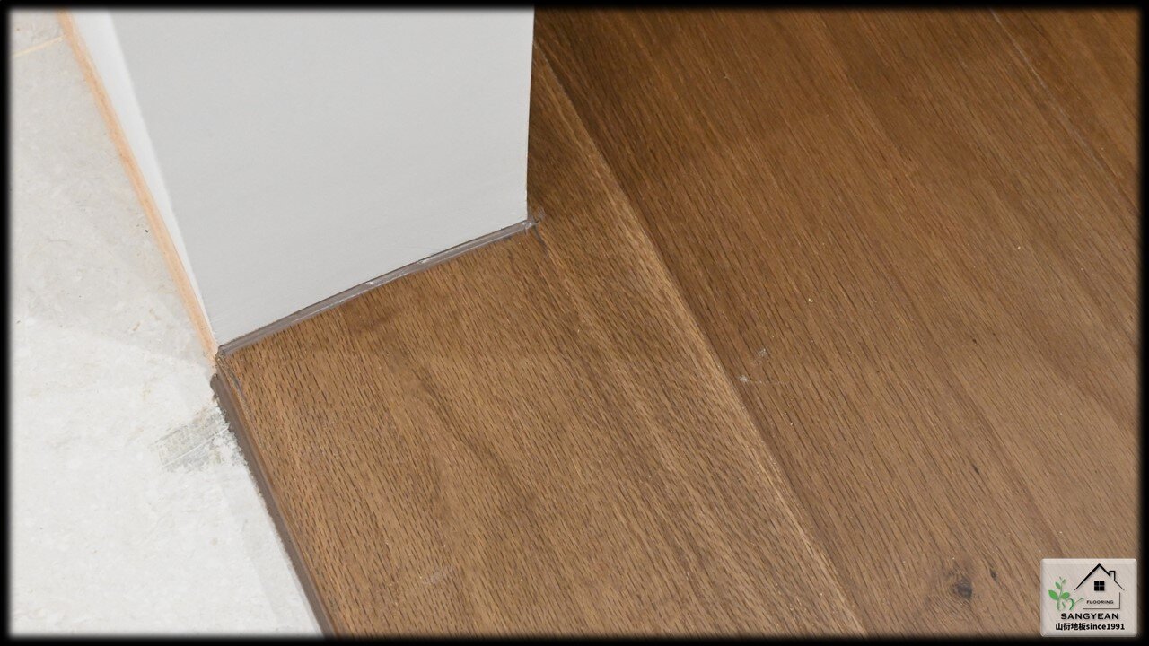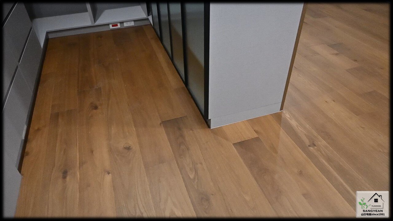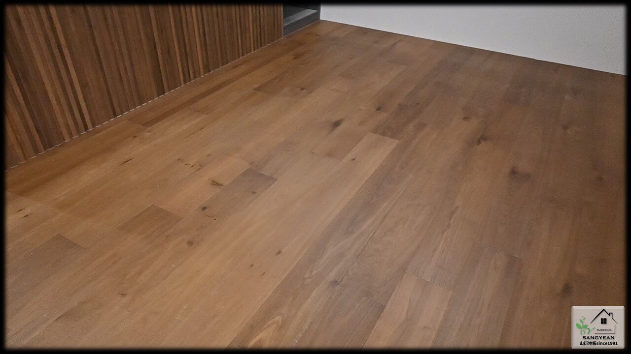 探索煙燻橡木 海島型木地板 1901系列木地板 施工實例分享 / 作者: sangyean / Carrymay, f1, 品牌木地板, 深色系 / 2024 年 12 月 28 日 煙燻橡木 作為現代設計中備受推崇的樹種選擇之一,其深沉而富有層次感的色彩、獨特的質感與穩定的物理特性,不僅展現了橡木材質的天然之美,還透過特殊的加工工藝提升了其視覺與性能表現。 煙燻橡木為歐洲十分喜愛的顏色,煙燻有分染色或是真正煙燻做出來的色,橡木本身為淺色木,染成深色會少一點自然色差,但是如果採用真正煙燻做出來得顏色,整體看起來更加自然。 煙燻橡木 視覺效果與適合的裝修風格 煙燻橡木的顏色通常從深棕色到黑褐色不等,這種色調深沉而穩重,木材的紋理在加工過程中被保留並突顯,深淺相間的紋理讓每一塊煙燻橡木都具有獨一無二的美感。 •現代簡約風:煙燻橡木的深色調與現代簡約風格中的淺色牆面、金屬元素或簡潔家具形成鮮明對比,增強空間的視覺層次感。 •工業風:煙燻橡木地板與工業風的裸露磚牆、混凝土牆面或黑鐵結構非常搭配,提升空間的質感。 •北歐風:雖然北歐風以淺色系為主,但煙燻橡木可以作為深色點綴,與淺色家具形成對比,讓空間更具深度。 •鄉村田園風:煙燻橡木的天然紋理與田園風的木質家具、綠植點綴相呼應,打造出自然且懷舊的氛圍。 •現代鄉村風:煙燻橡木與現代鄉村風的混搭設計特別契合,木地板的深色調能為鄉村風加入一種現代感。 煙燻橡木 地板規格 1901系列 規格: 寬190x厚12/1(面厚)x長900-1800mm 表面處理: 小浮雕 LightBrushed 表面塗裝: UV透氣漆 採用平鋪施工,含4分F1落葉松夾板,甲醛F1,從木地板產品到底下夾板,都是選用幾乎無甲醛材質(甲醛零檢出),除此之外夾板底下再鋪上一層2mmPE墊,符合建築法規隔音測報,將所有細節給予把關。 四周牆面與地板交接採用接近地板顏色矽利康收邊。 煙燻橡木地板施工實績照片 煙燻橡木海島型地板收邊實績照片 海島型地板伸縮極小,所以可以下釘與黏膠,地板與四周牆面預留縫隙小,以接近色矽利康收邊。地板高低差部份,以3mm厚的線板直接封上地板破口處(線板也是煙燻橡木)。 更多海島型木地板案例分享 更多Carrymay實績