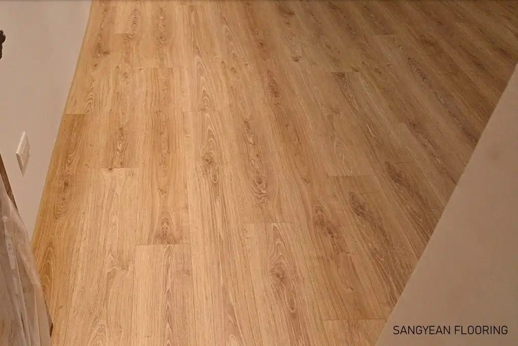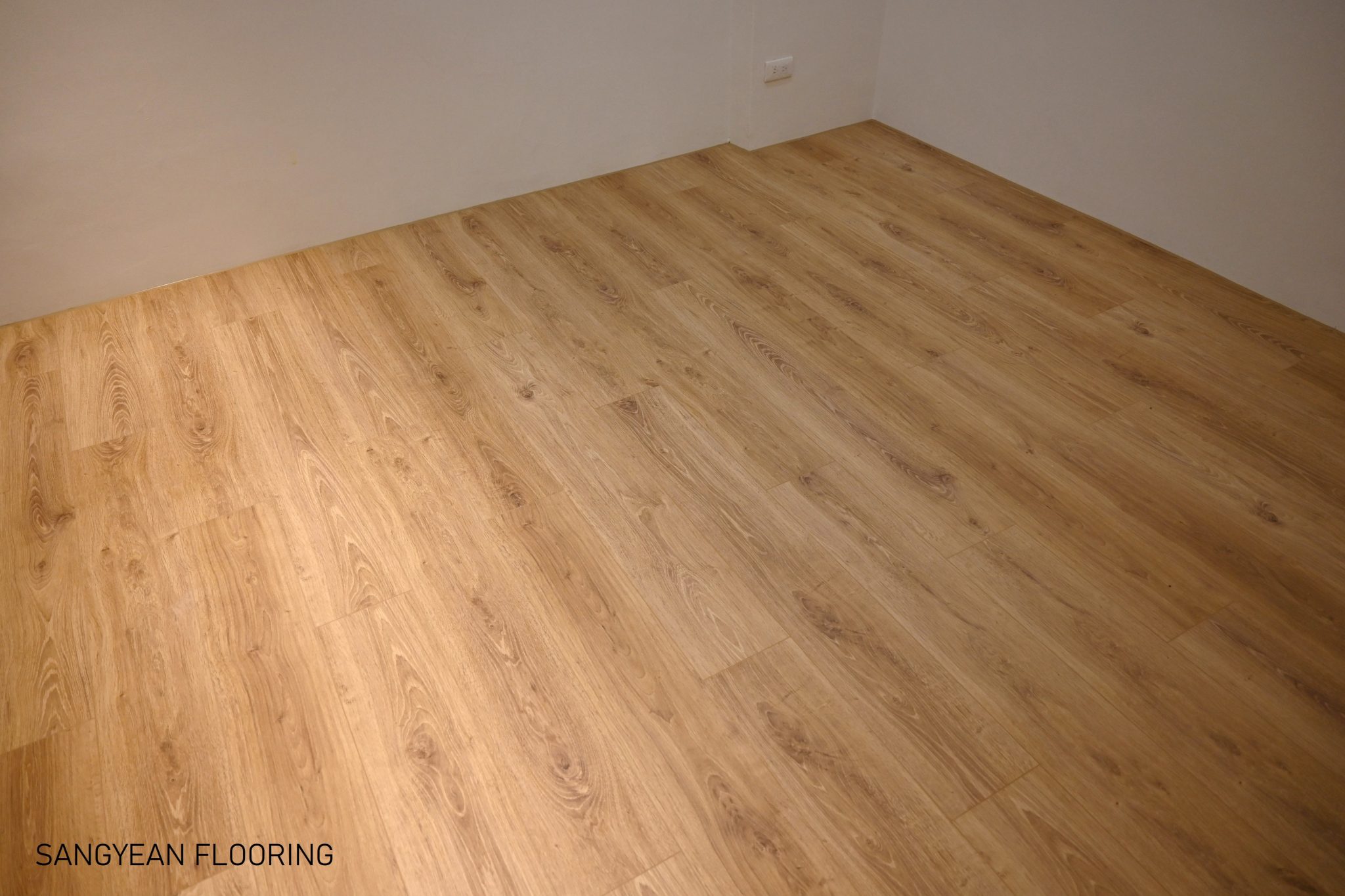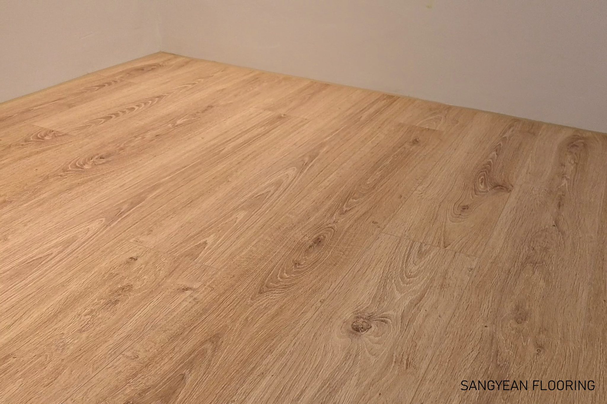 此外,在材質感方面,Elka 281 採用超耐磨木地板工藝,表面經特殊處理呈消光霧面效果,不會有過多反光,視覺上更接近天然木頭的質樸質感。同時四邊有細緻的倒角(V型槽),每片板材邊緣略微斜角收邊,不僅強調單板的線條,也使得鋪設完成後地板紋理更有立體感。這種 4V 倒角的設計搭配木紋表面的壓紋處理,增強了地板的真實感和質地,讓人踏在上面時能感受到與實木地板相仿的觸感和視覺效果。總之,Elka 281 地板顏色給人最大的印象就是自然溫潤——色調溫暖、紋理自然,能輕鬆融入各種室內風格並提升空間的質感。