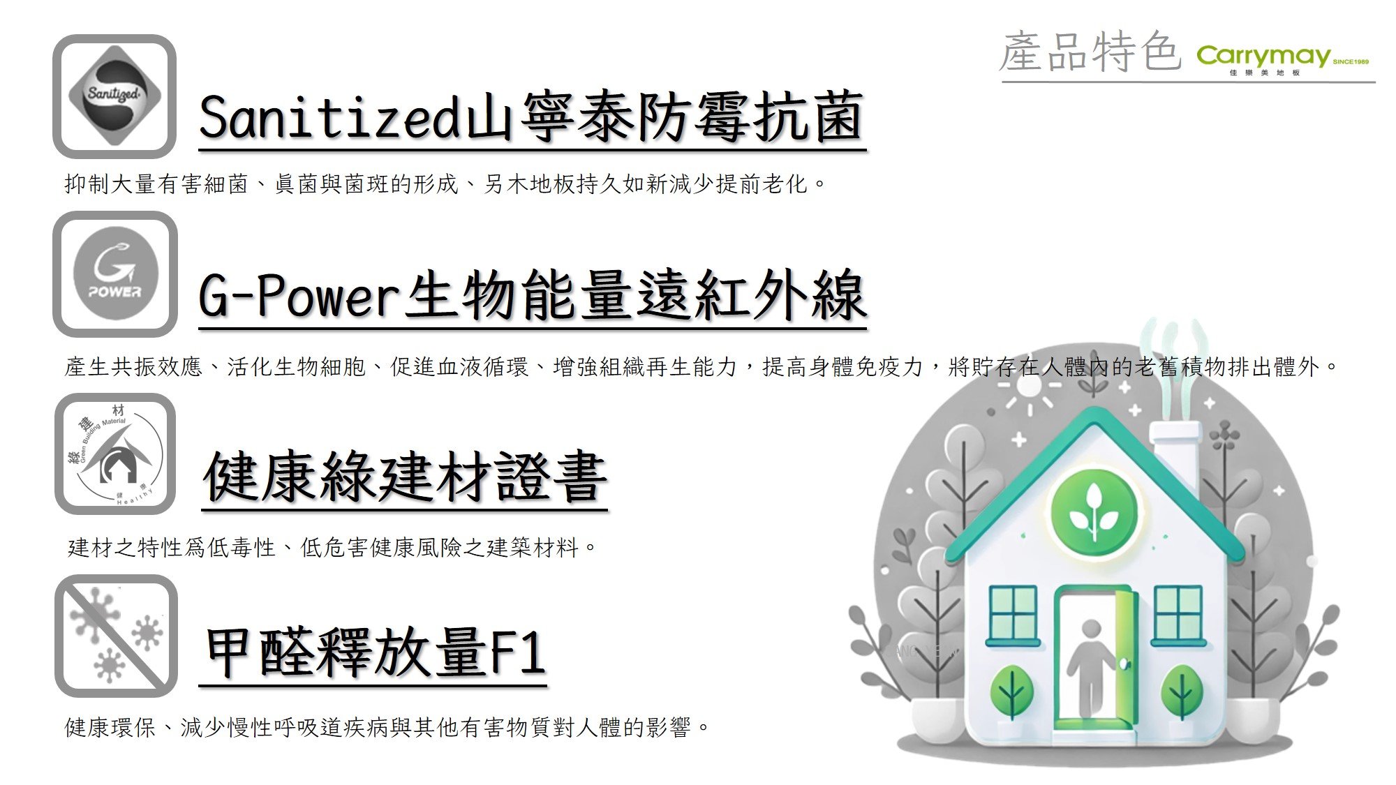 另搭配配Sanitized防霉抗菌塗層與G-POWER 遠紅外線