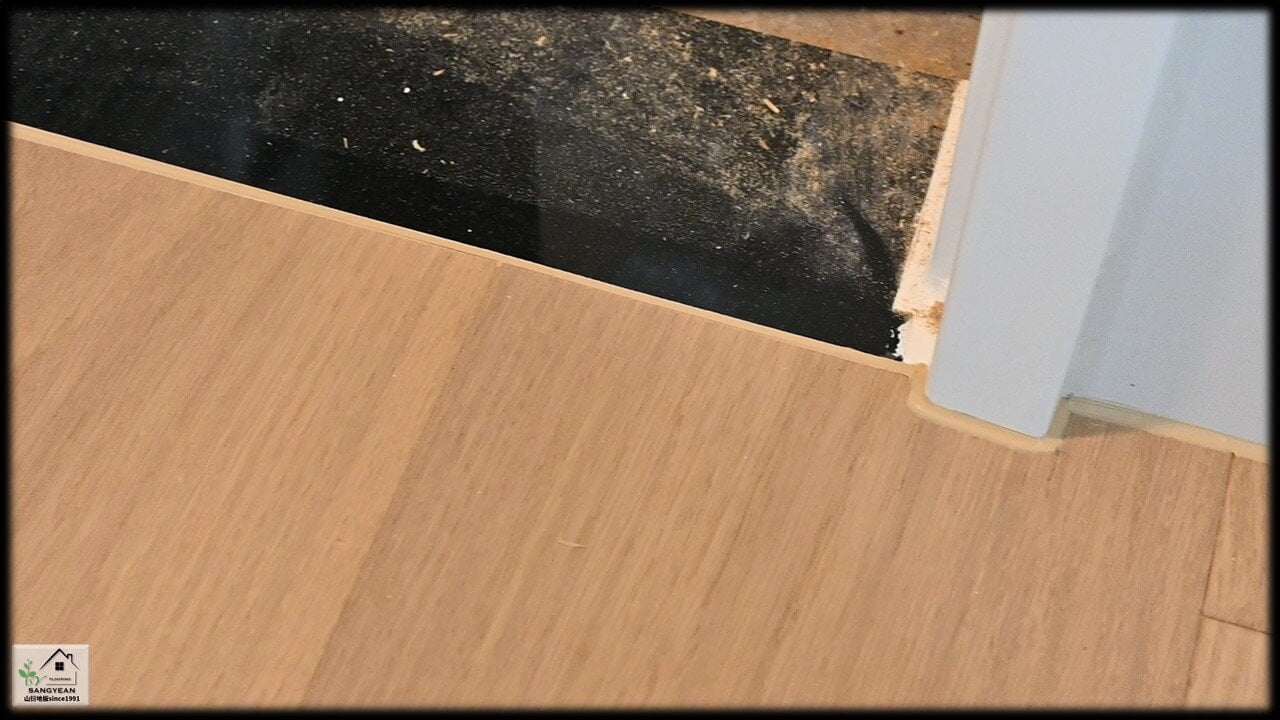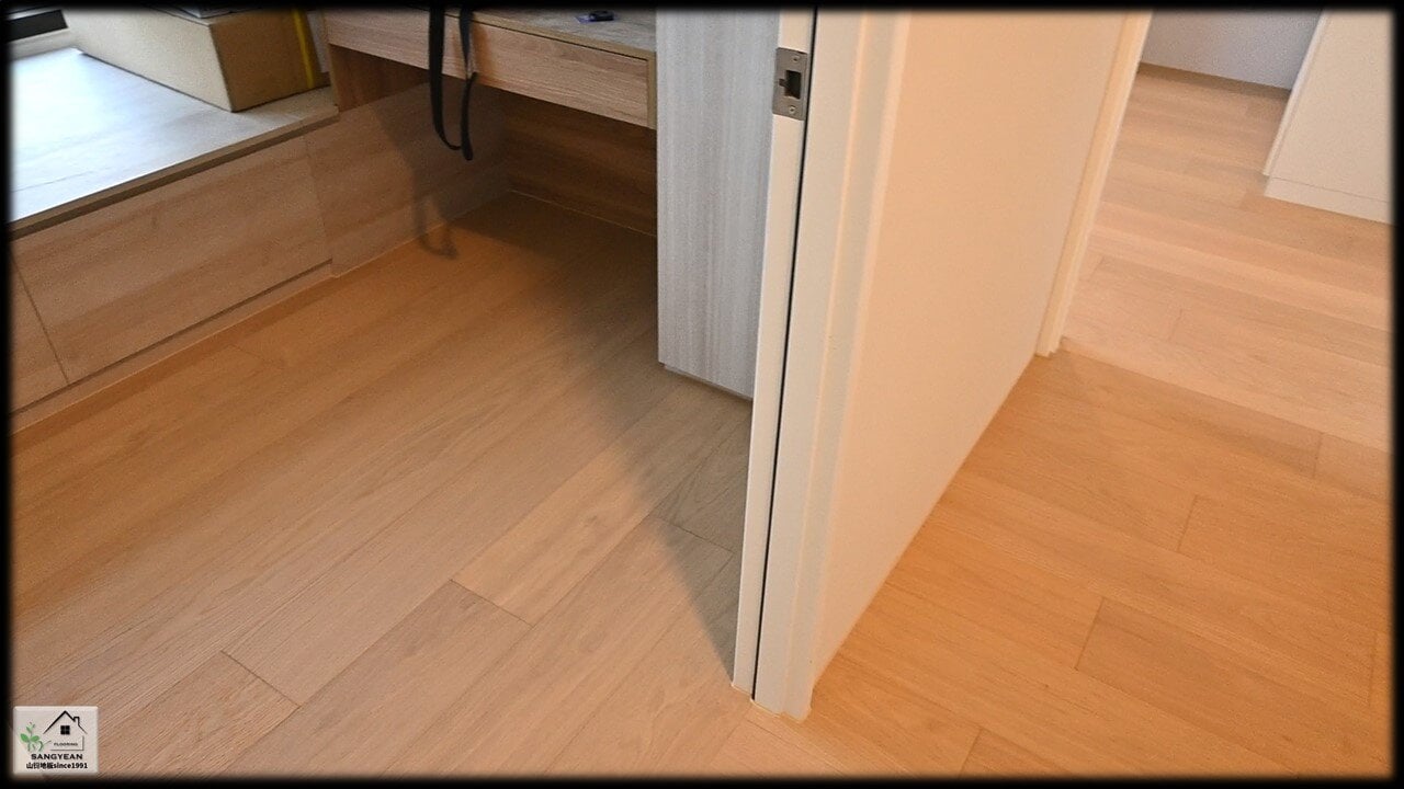 此案業主就是堅持要海島型木地板,天然材質質感,非人造超耐磨所可以模仿的。由於業主的設計師廠商只有施作超耐磨,才會再最後階段找到山衍,從場勘到決定施作只花了兩天時間,而木地板也在清潔前順利完工。