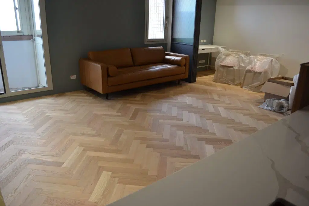 家裡木地板如何挑選?顏色花紋與色差?PART2地板該如何選擇 / 作者: sangyean / 木地板挑選 / 2025 年 3 月 26 日 家裡木地板如何挑選?顏色花紋與色差?木地板是室內設計中的關鍵元素,選對色系與紋理不僅能提升視覺質感,更能為整體空間營造理想的氛圍。本文將為你提供全面的木地板挑選建議,從淺色與深色到冷暖色系,再到紋理與節眼,幫助你快速找到完美的木地板。一、木地板淺色與深色挑選技巧-家裡木地板如何挑選?顏色花紋與色差?淺色木地板淺色系木地板能讓空間顯得更明亮與寬敞,特別適合小坪數或採光較差的房間,能打造明亮、開闊的視覺效果。推薦型號:177/207(冰島橡木)、178、175、304、557深色木地板深色系木地板具備沉穩、質感的視覺特性,適合用於打造典雅、奢華或古典的室內氛圍,能展現內斂而高級的空間感。推薦型號:403、387、174、575 二、木地板冷色系、暖色系與中間色的運用冷色系木地板冷色系以白色與灰色為主調,提供清爽、寧靜的視覺感受,尤其適合現代極簡、北歐、工業風設計,並具有擴大視覺空間的效果。推薦型號:177、182、304暖色系木地板暖色系包括白橡色、柚木色、胡桃色等,能營造溫暖舒適的居家氣息,特別適合家庭住宅或古典歐式、鄉村風格,給予居住者溫馨親切的感覺。推薦型號:178、175中間色木地板中間色如秋香色,介於冷暖之間,給予空間柔和而自然的平衡感,易搭配各種風格,適合追求個性、低調卻又有特色的空間設計。推薦型號:391 三、木地板紋理與節眼如何挑選?色差地板本身的色差:自然木地板每塊皆有獨特色澤與紋路,增添天然質感(例如:型號387)。地板間的色差:地板間的細微色差可豐富空間視覺層次,避免單調感(例如:型號175)。紋理導管紋(例如:型號183):導管紋理能凸顯木材天然的生長痕跡,增加地板的質感與立體度,適合喜愛自然氛圍的居家設計。節眼有節眼地板(例如:型號428)能凸顯木材的自然與原始風貌,適合追求自然樸實、鄉村風格。無(少)節眼地板(例如:型號133)則給予乾淨、整潔的視覺印象,更適合現代簡約或喜歡一致性較高的空間。 天然實木地板顏色上的色差 以上範例都是以超耐磨地板為選擇前提下做挑選,事實上如果您家裡想鋪的是表層實木海島型木地板,或是全實木地板,顏色上挑選就無法那麼精準,超耐磨是電腦高精度轉印出來,所以高品質超耐磨地板,每批貨顏色是可以做出一樣的,但是天然實木會隨時間氧化顏色稍微會有些不同,每批貨的顏色可能會稍微不同,同批貨也可能分出不同色號,顏色上的確認還是請以現貨為基準,而非樣品的顏色。 天然實木花紋 不同的樹種會有其不同的花紋,風格也差異很大目前市面上比較常見的是:白橡木,柚木,胡桃木,水曲橡 柚木 白橡木 水曲橡 北美胡桃木 白橡木無節眼與有節眼 白橡木特有花紋就是節眼,這個花紋在歐洲十分流行,所以歐洲超耐磨地板設計上都是以白橡木為大宗,但是您如果不想要白橡木的節眼,又想要白橡木特有圓滑的木紋(水曲橡沒節眼,可是木紋比較尖銳),其實也可訂製白橡木,無節眼(可能會有小黑點黑斑),海島木地板。 白橡木 無節眼 人字拼地板 白橡木 有節眼 人字拼地板