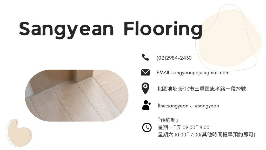 為方便服務大台北地區的客戶,Sangyean Flooring 在新北市三重區設有專業木地板展示門市。三重門市是北部地區的據點,交通便利且提供預約制的一對一服務體驗。以下是三重門市的相關資訊:
