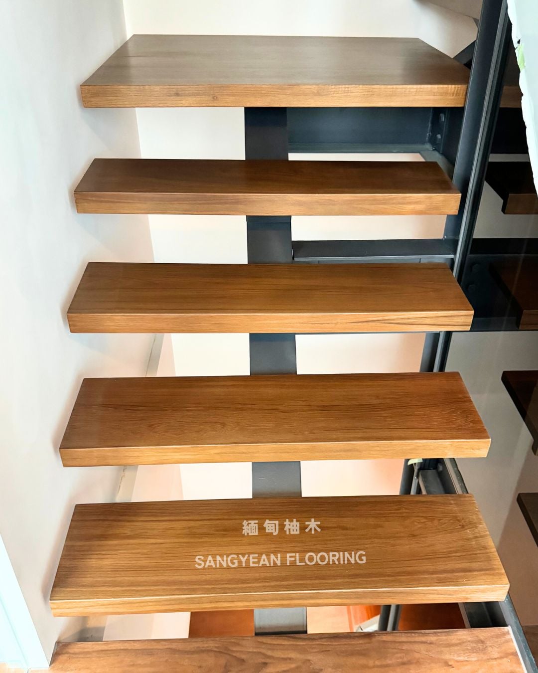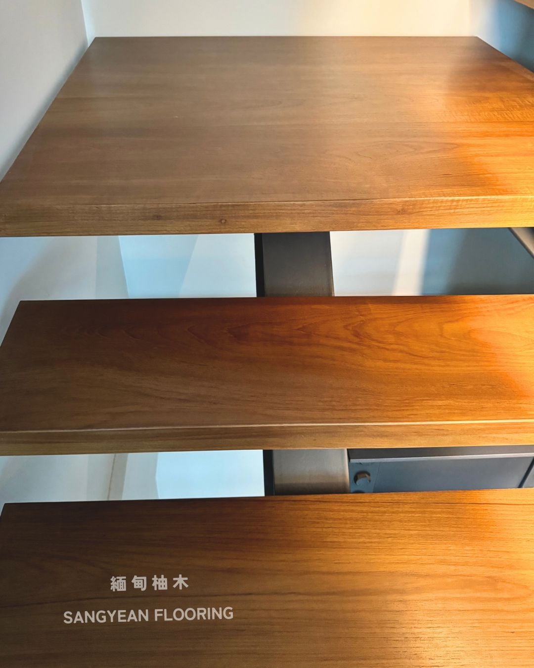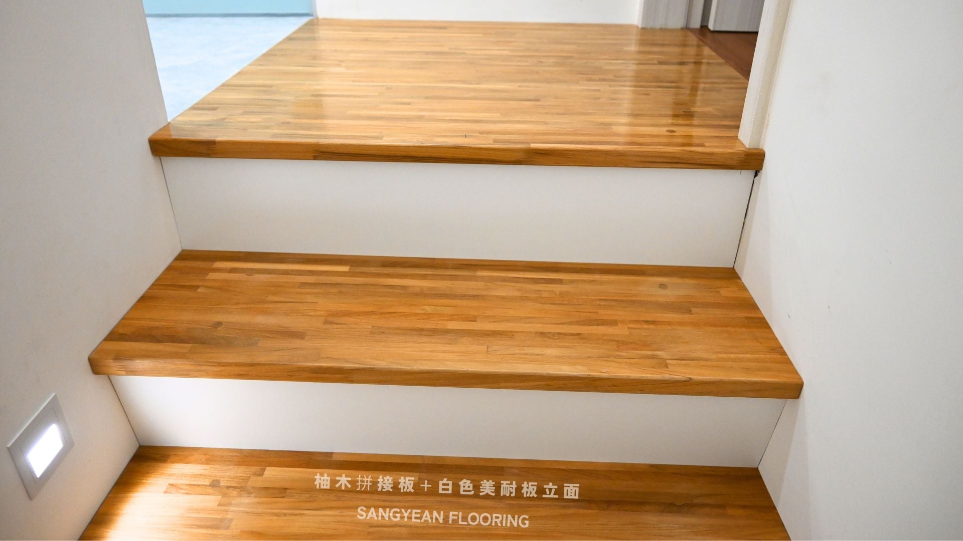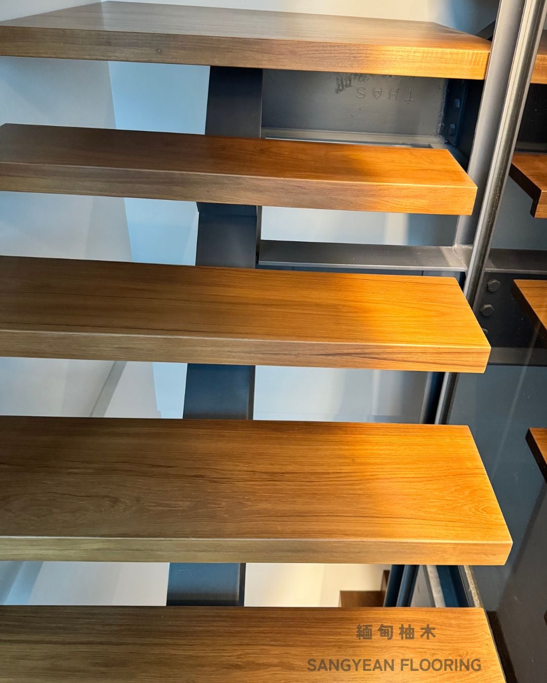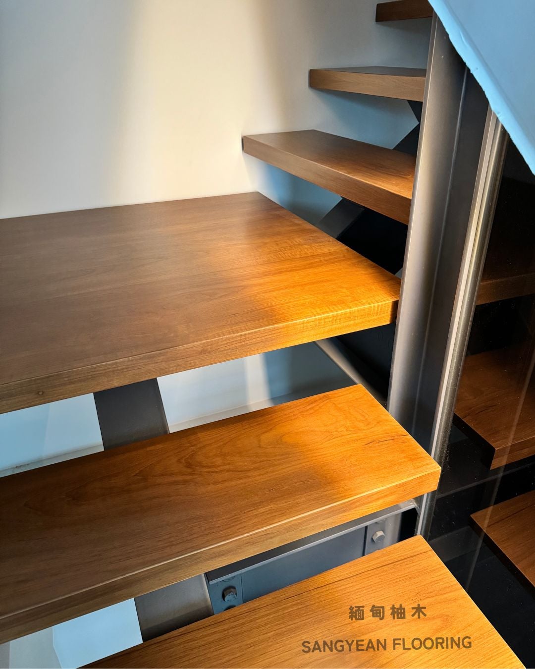 實木樓梯踏板|溫潤步伐與安全止滑樓梯 / 作者: sangyean / 樓梯踏板 / 2025 年 10 月 21 日 在室內設計中,樓梯不僅是連結樓層的動線,更占據顯著的視覺份量,等同於裝潢與家具的一部分;選擇實木樓梯踏板,能同時提升質感與安全。 實木樓梯踏板的優點: 選擇實木樓梯踏板,能讓動線維持乾淨俐落的比例,營造沉穩而不厚重的視覺。實木(如緬甸/印尼柚木、條併栓木、南美柚木、拼接材)具良好彈性與穩定度,腳感回彈讓長輩與孩童日常上下樓更輕鬆。 厚度約30mm、,耐磨易清潔,同時維持自然木紋細節。 另可搭配立面施工(木地板或美耐板等異材質) 栓木條併實木樓梯踏板-淺色木 栓木淺色木,紋理筆直、山形紋清晰,色澤由淡米色至淺褐色,整體視覺明亮、耐看。材質硬度與韌性兼具,具良好彈性與抗震性, 緬甸柚木實木踏板 緬甸柚木以金棕至深棕色與細緻油性色帶聞名,穩定性與耐候性極佳,含油量高、抗潮抗形變,行走腳感溫潤且具微彈性。紋理直且優雅,久用色澤更沉穩 拼接實木踏板 材質:柚木與橡木,栓木 南美柚木踏板安裝範例 南美柚木色澤通常較緬甸柚木更淺,從淡稻麥色、蜂蜜金到淺金棕,日照後會慢慢轉為暖焦糖色;木紋以直紋為主、油線較柔和,整體給人明亮、清爽、年輕感。偶爾會有黑線條 讓每天的上上下下,成為被木紋妥帖接住的節奏。選對實木樓梯踏板其止滑、木紋觸感等細節,家就同時擁有美感與安全 line:@sangyean