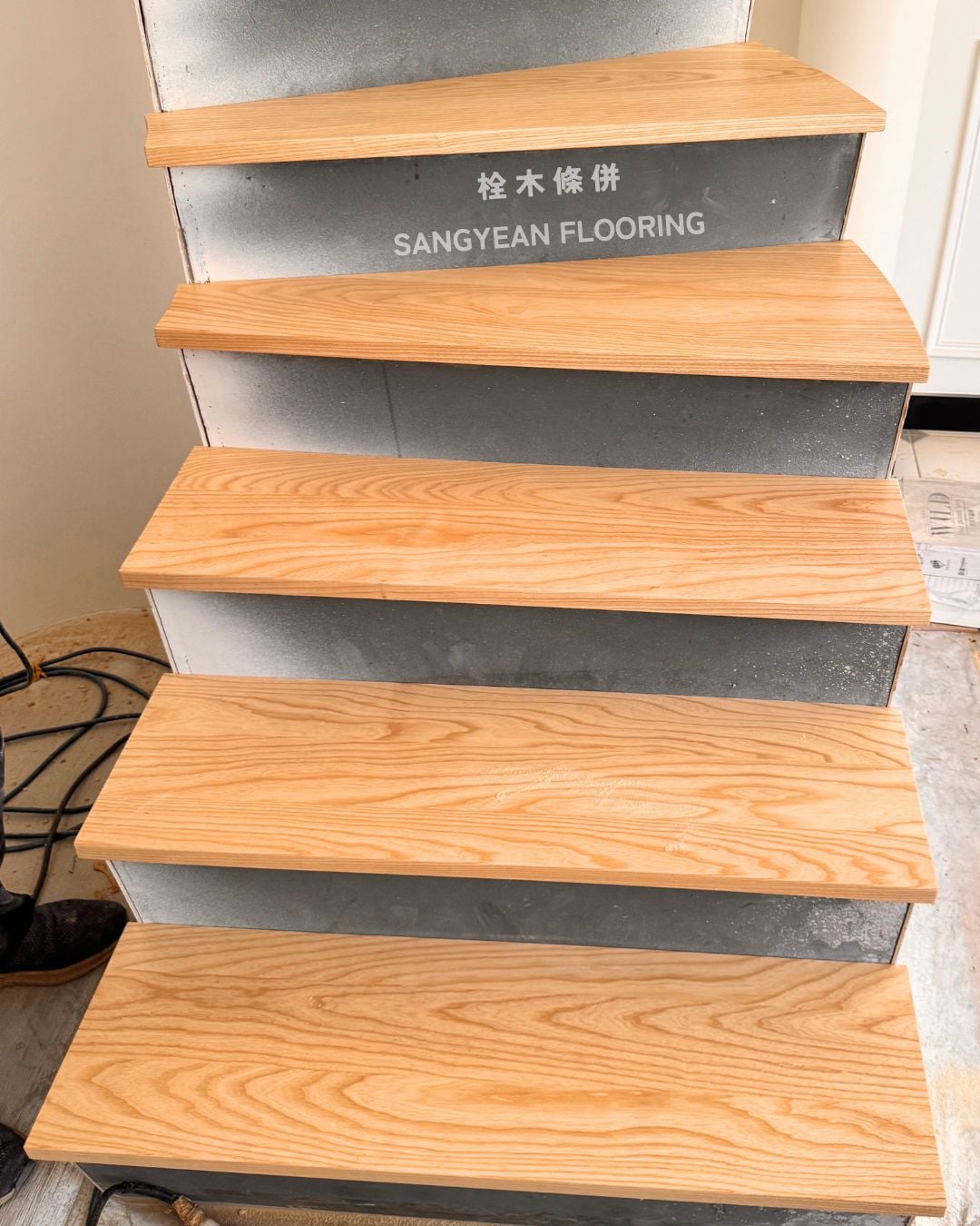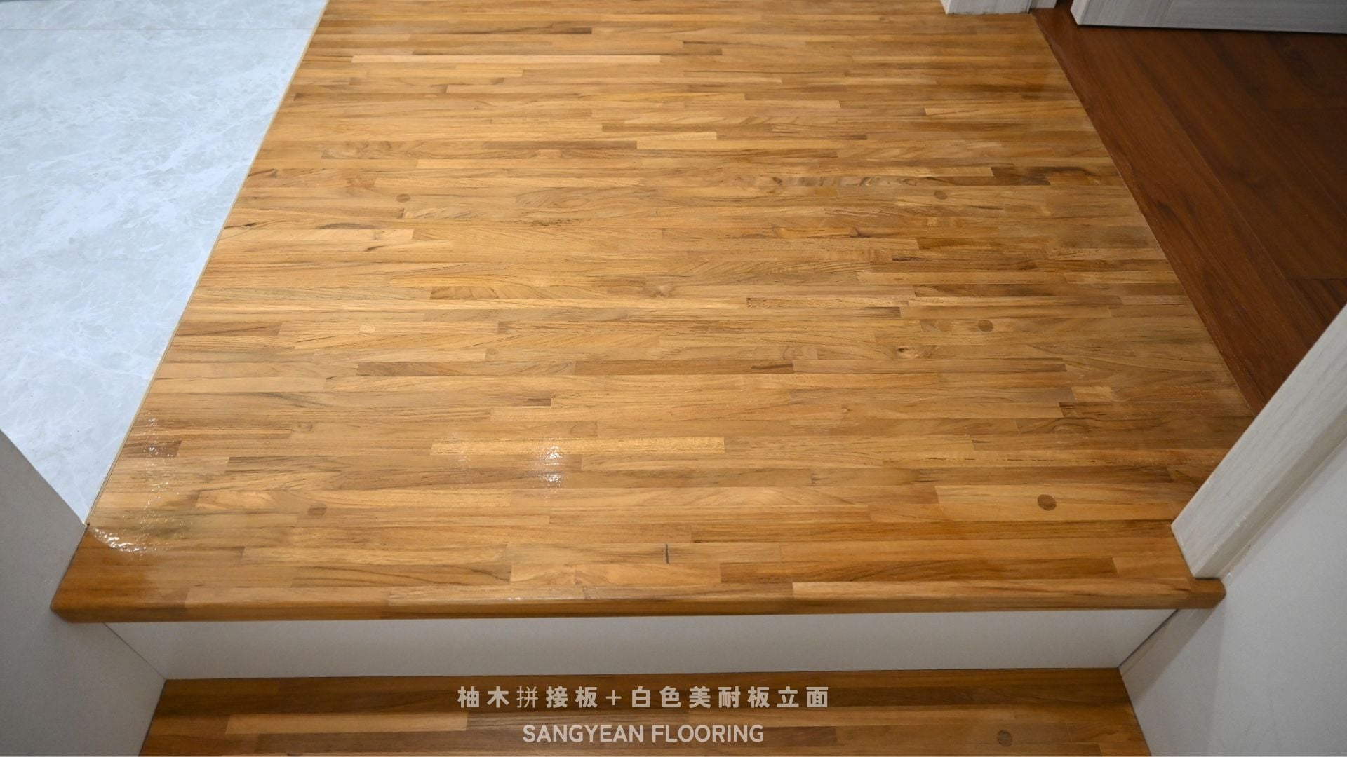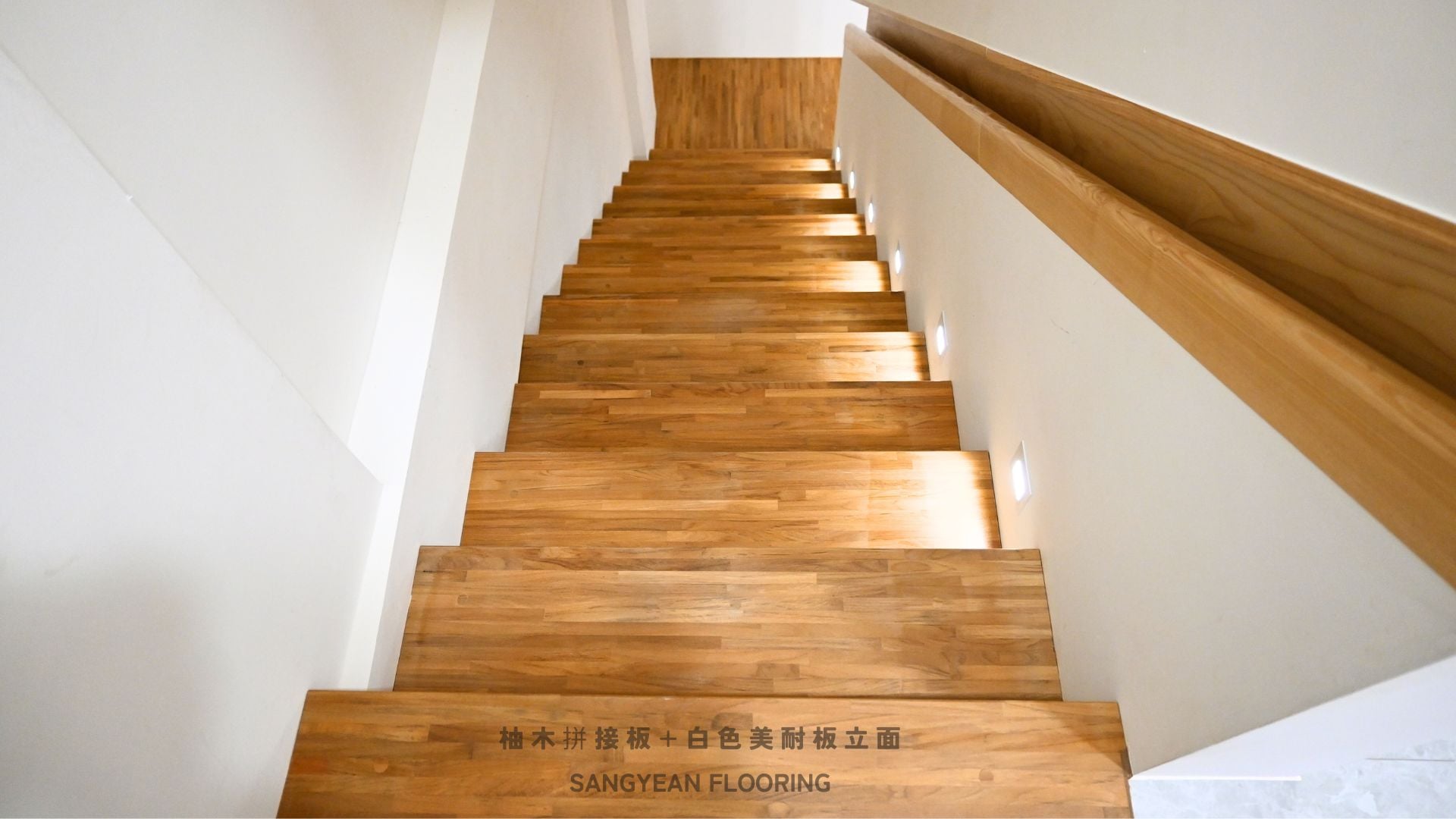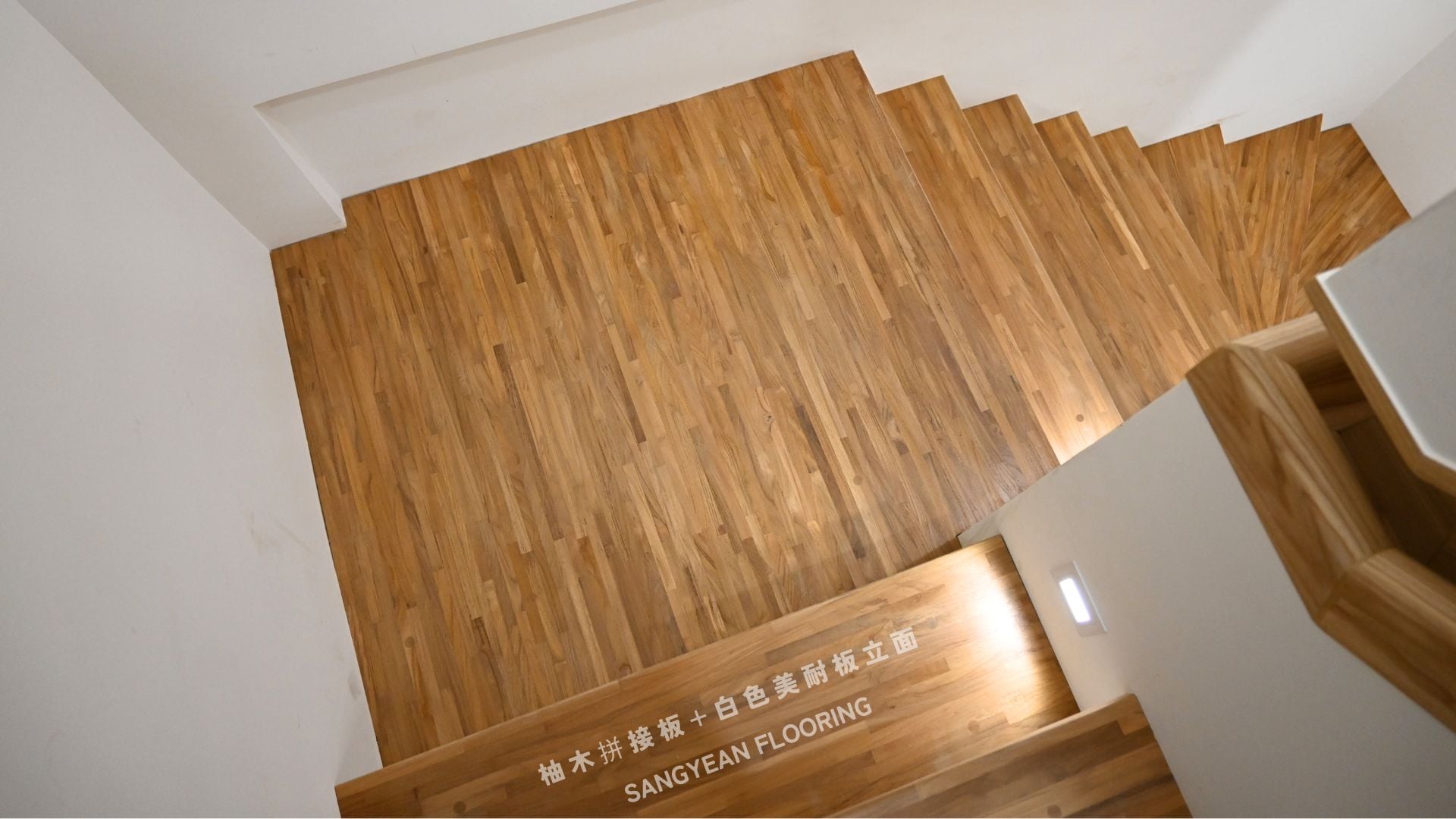 實木樓梯踏板|溫潤步伐與安全止滑樓梯 / 作者: sangyean / 樓梯踏板 / 2025 年 10 月 21 日 在室內設計中,樓梯不僅是連結樓層的動線,更占據顯著的視覺份量,等同於裝潢與家具的一部分;選擇實木樓梯踏板,能同時提升質感與安全。 實木樓梯踏板的優點: 選擇實木樓梯踏板,能讓動線維持乾淨俐落的比例,營造沉穩而不厚重的視覺。實木(如緬甸/印尼柚木、條併栓木、南美柚木、拼接材)具良好彈性與穩定度,腳感回彈讓長輩與孩童日常上下樓更輕鬆。 厚度約30mm、,耐磨易清潔,同時維持自然木紋細節。 另可搭配立面施工(木地板或美耐板等異材質) 栓木條併實木樓梯踏板-淺色木 栓木淺色木,紋理筆直、山形紋清晰,色澤由淡米色至淺褐色,整體視覺明亮、耐看。材質硬度與韌性兼具,具良好彈性與抗震性, 緬甸柚木實木踏板 緬甸柚木以金棕至深棕色與細緻油性色帶聞名,穩定性與耐候性極佳,含油量高、抗潮抗形變,行走腳感溫潤且具微彈性。紋理直且優雅,久用色澤更沉穩 拼接實木踏板 材質:柚木與橡木,栓木 南美柚木踏板安裝範例 南美柚木色澤通常較緬甸柚木更淺,從淡稻麥色、蜂蜜金到淺金棕,日照後會慢慢轉為暖焦糖色;木紋以直紋為主、油線較柔和,整體給人明亮、清爽、年輕感。偶爾會有黑線條 讓每天的上上下下,成為被木紋妥帖接住的節奏。選對實木樓梯踏板其止滑、木紋觸感等細節,家就同時擁有美感與安全 line:@sangyean