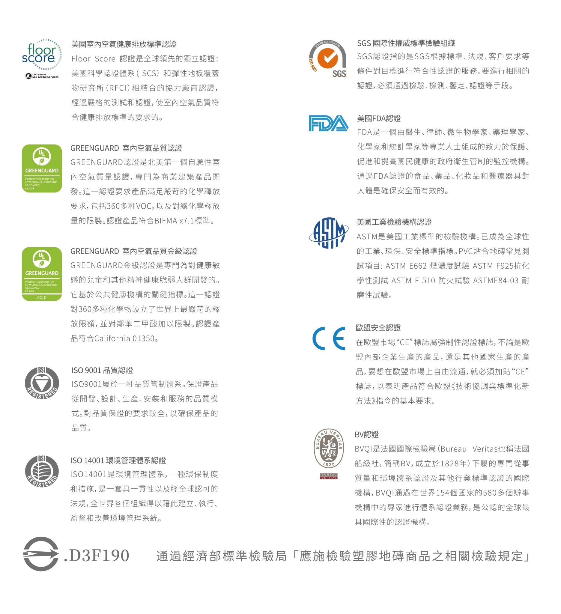 台灣製造的 SPC石塑地板,通過多項環保與安全檢測,包含甲醛零檢出、耐磨測試、防滑檢驗等,給消費者多一份安心。符合台灣氣候需求