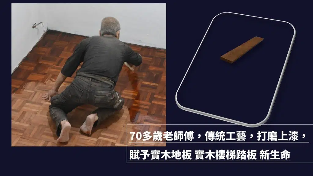 這此請來70多歲的老師傅,擁有將近半世紀的經驗,施作兩個小房間,重新打磨上漆給予實木地板新生命。